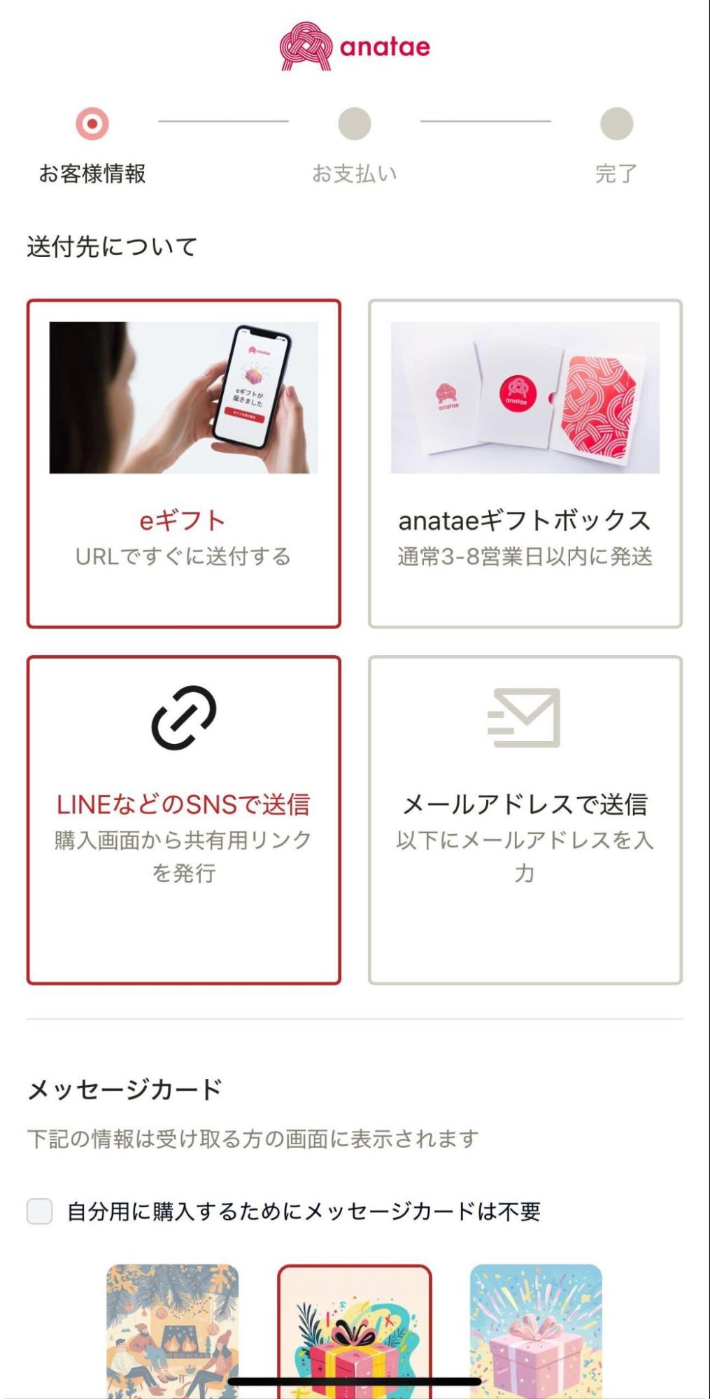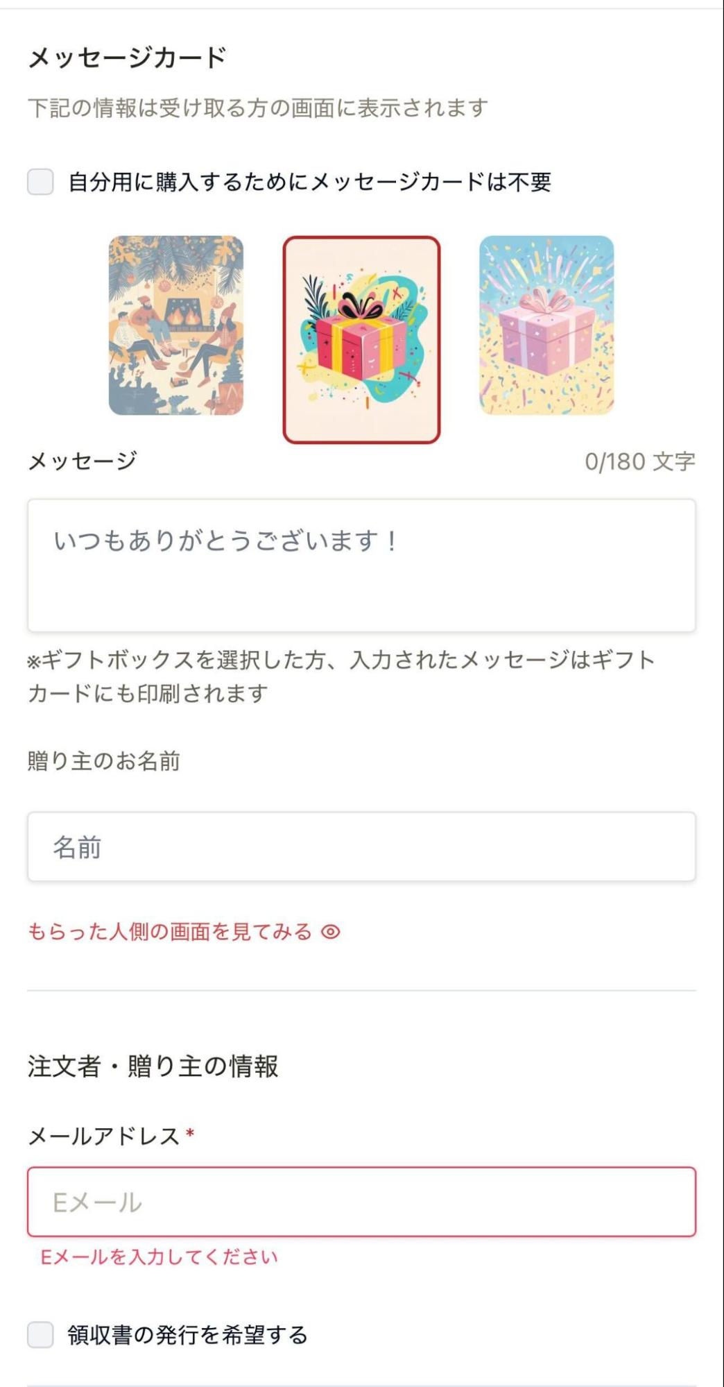 ギフトの送り方を選ぶ(eギフトまたはギフトボックス)