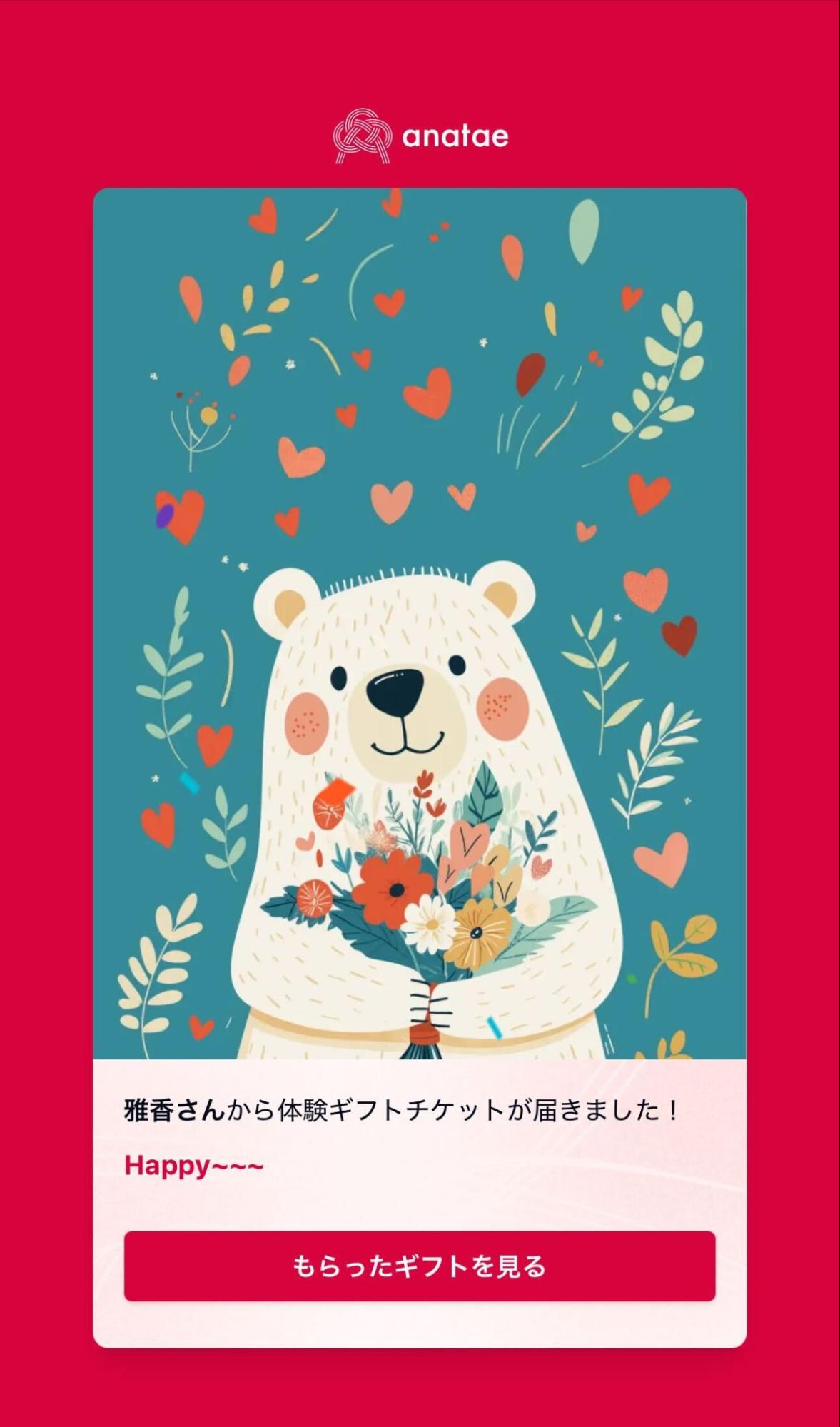 anataeで体験ギフトを購入する方法、贈る方法、受け取ったanatae ギフトを使う方法をご紹介します。