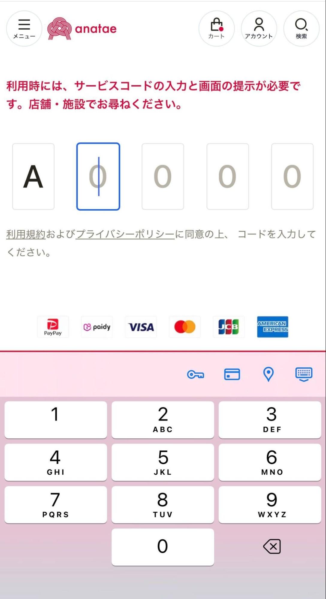 STEP5. バウチャーのページから「サービスコード」を入力する