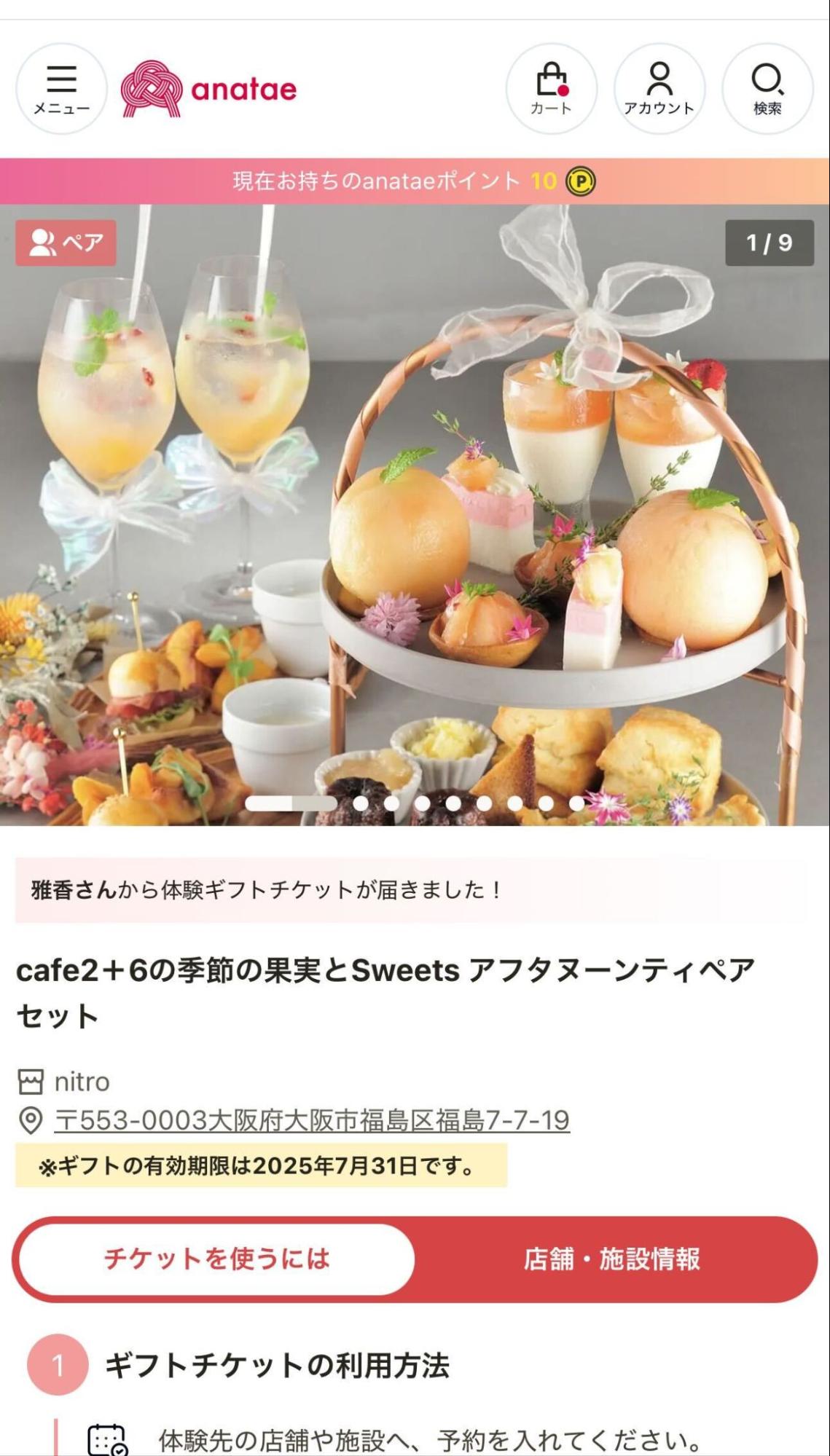 anatae で贈られたギフトを確認する、利用する【受け取り方・使い方】