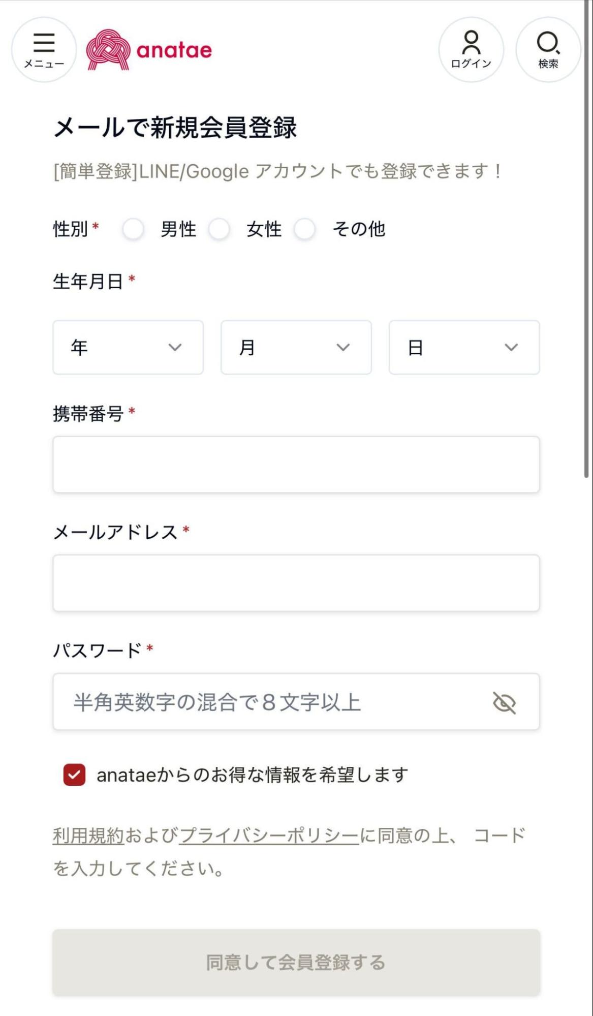 ※ログインまたは会員登録の方法は、この記事の H4: anatae にログインする をご確認ください。