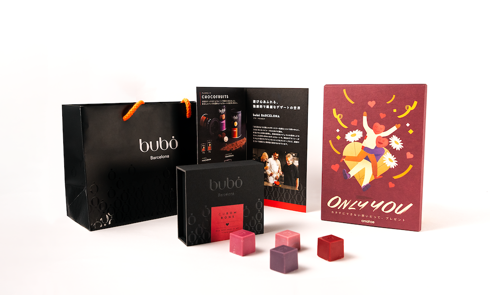 体験ギフトanatae では、ブボ・バルセロナのキューブボンボン ラブ(4種)とanataeのカタログギフト:ギフトBOX版の特別セットを、300個限定でご用意しました。