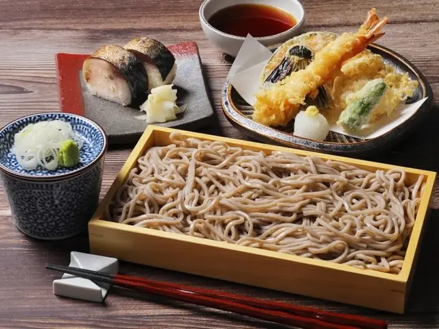 喉越しのよい江戸切り蕎麦に、海老と野菜の天麩羅、焼き鯖の棒寿司がセットになった充実のランチコースが提供されます。日本橋川を眺めながらいただく食事は、普段のランチとは一線を画す特別感を味わえるでしょう。