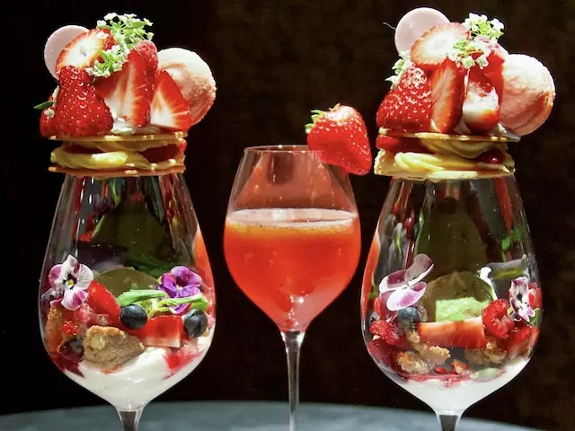 ドリンクは、紅茶の名門「TWG」やノンアルコールドリンクの「DOUXLESS」など、いずれも上質なラインナップから選択可能です。シェフがペアリングを考えてセレクトしているため、パフェとの相性も楽しめます。