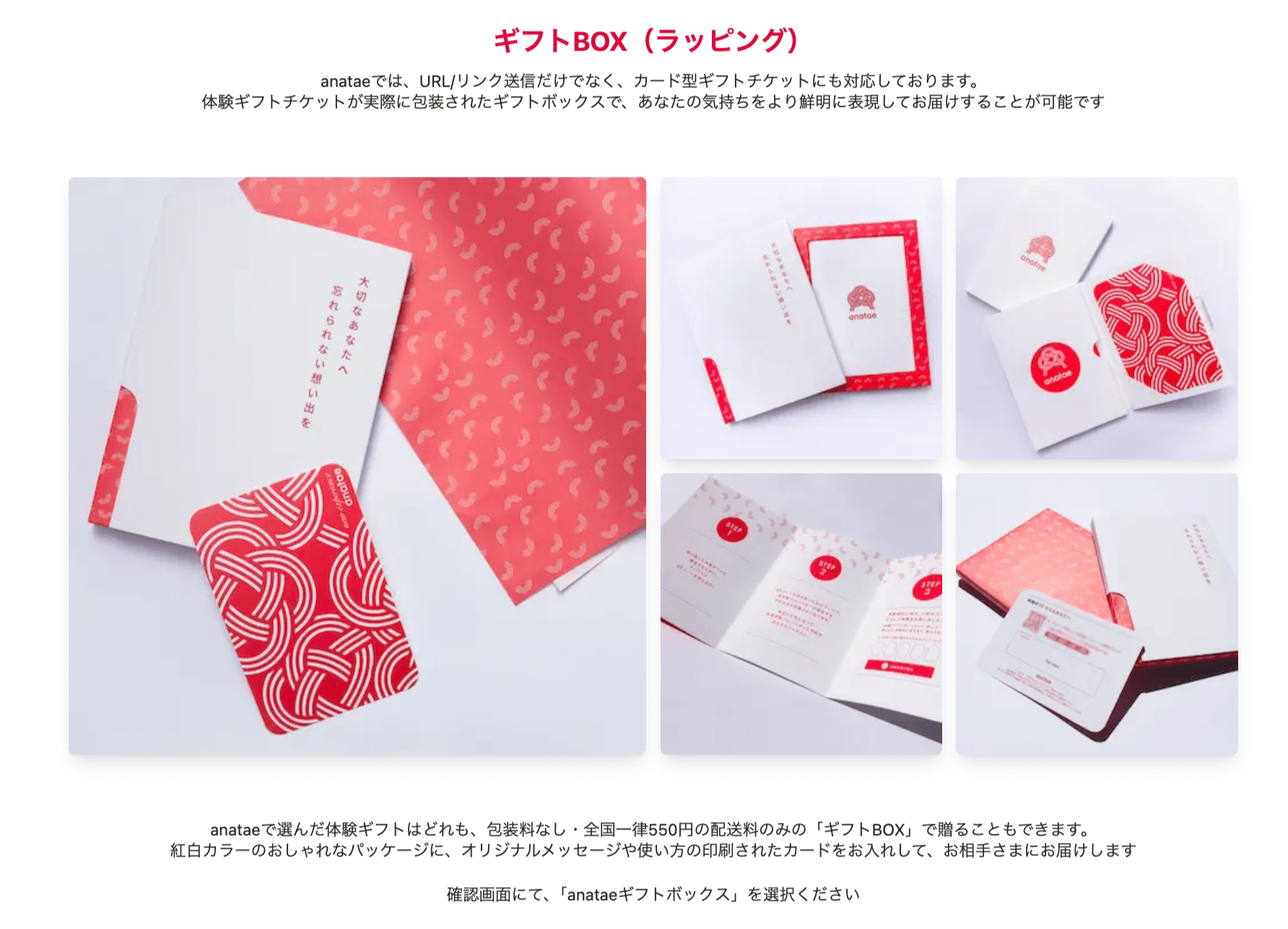 そして3つ目の魅力は、贈り方が選べる点です。anataeではeギフトまたはギフトBOXと贈り方が選べます。もし相手が遠方の方や忙しい方であっても、eギフト形式ならきっと気軽に贈ることができるでしょう。